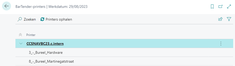 Hier ziet u alle printers die beschikbaar zijn in BarTender Cloud.