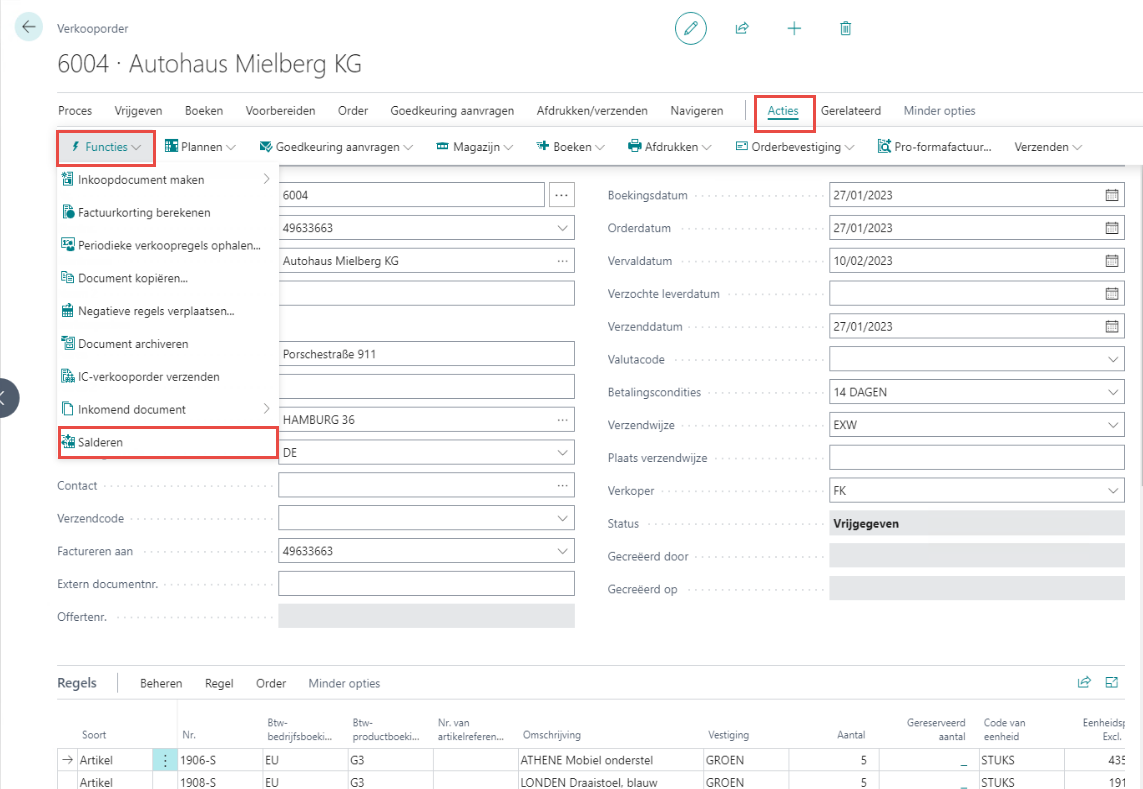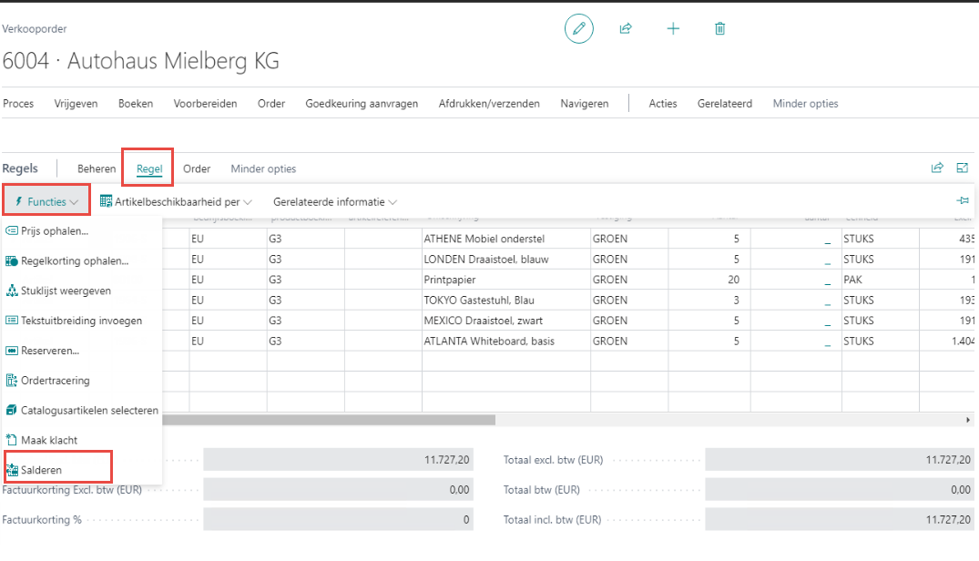 Zowel bij verkoop- als inkooporders is het mogelijk om lijnen te gaan "salderen".