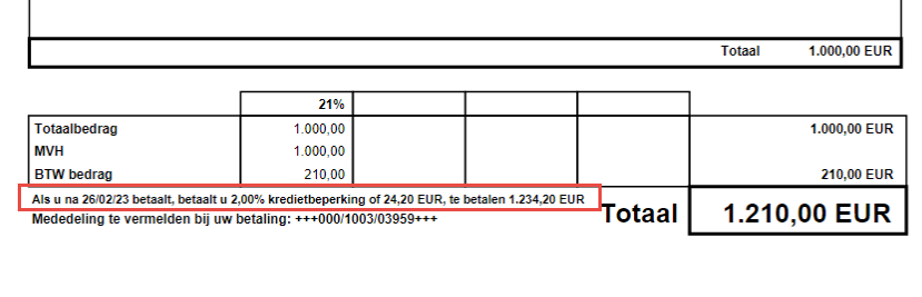 De kredietbeperking wordt tevens afgedrukt op de factuur.