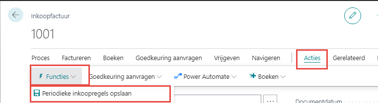 Wanneer een periodieke inkoopregel wordt gemaakt vanuit een inkoopfactuur, dan wordt de waarde uit de inkoopfactuur gebruikt.