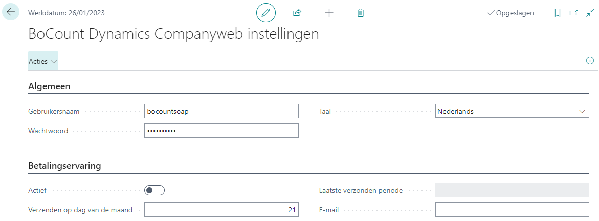 Als de betalingservaring actief wordt gezet, zal er bij het maken van de eerstvolgende gedetailleerde klantenpost een taakwachtrijpost gemaakt worden die zal draaien op de dag uit de BoCount Dynamics Companyweb instellingen. Die taakwachtrijpost zal alle openstaande facturen doorsturen naar Companyweb.