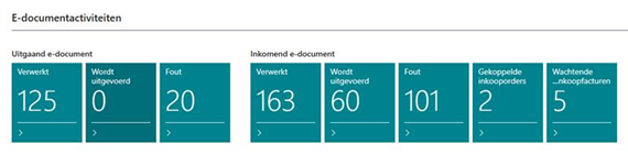 In het rolcentrum “bedrijfsmanager” werd een overzicht van alle “e-documentactiviteiten” voorzien. U heeft dus een visueel overzicht van hoeveel inkomende en uitgaande facturen en creditnotas werden verwerkt, nog worden uitgevoerd of vastlopen op een foutmelding en dus een manuele tussenkomst vereisen.
