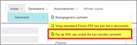 In bepaalde gevallen wordt een XML niet herkend omdat het formaat van de leverancier afwijkend is. In dat geval kiest u in het e-document voor “pas de XML aan zodat die kan worden verwerkt”. Er worden bepaalde acties uitgevoerd om de factuur alsnog te kunnen inlezen.