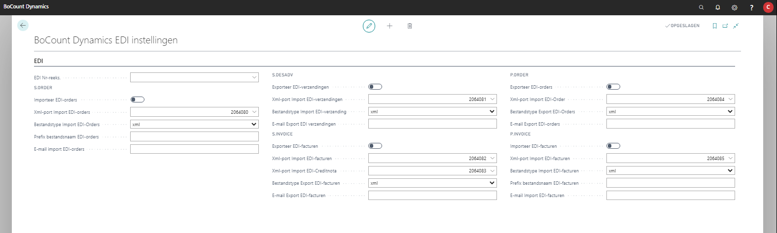 BoCount Dynamics EDI Instellingen