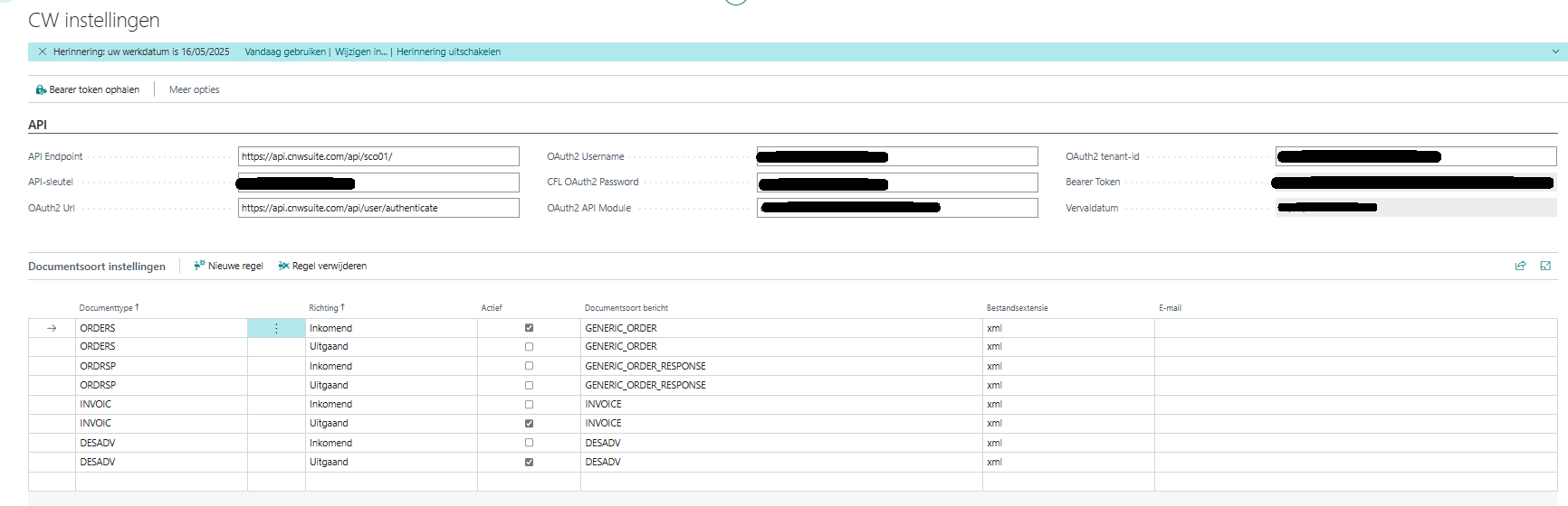Indien als provider C&W API wordt gekozen, dan worden de bestanden met C&W uitgewisseld via API.