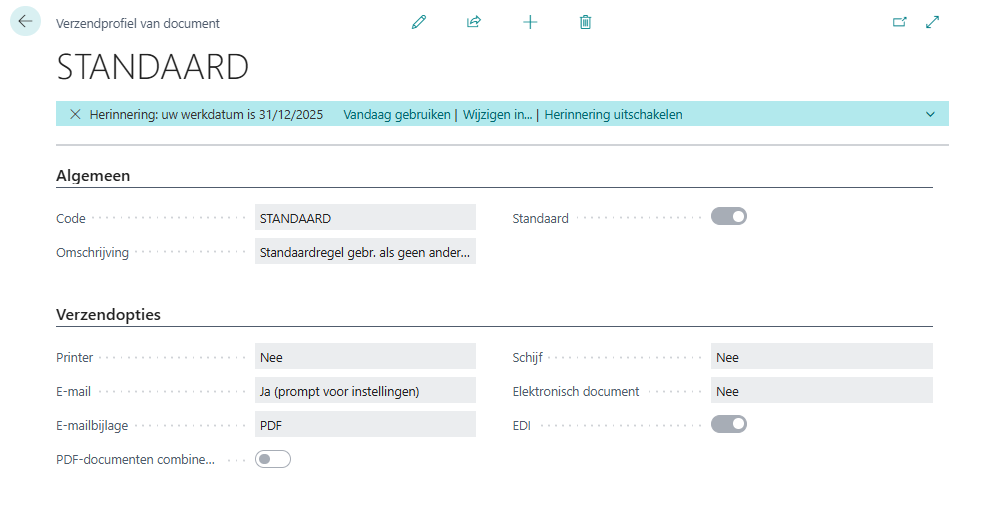 Op het verzendprofiel wordt enkel globaal ingesteld dat het document via EDI verzonden moet worden, per document wordt dan steeds gekeken naar de klant/leverancier of deze ook effectief met EDI werkt.