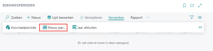 Op de lint klikt u op Groep Verwerken > Nieuw Jaar om een nieuw boekjaar aan te maken.