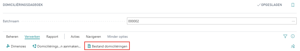 Wanneer het bestand succesvol werd aangeleverd, navigeert u naar het gekozen dagboeksjabloon/batch. Daar kan u vervolgens de dagboekregels boeken. Op dat moment worden de klantenposten afgesloten en wordt het totaalbedrag op een wachtrekening te ontvangen domiciliëringen geboekt. Bij de verwerking van uw financieel dagboek wordt die wachtrekening terug tegengeboekt.
