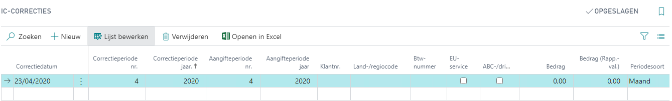 | Correctieperiode nr. | Dit is de maand waarin de correctie werd toegevoegd. Deze waarde wordt automatisch ingevuld. |