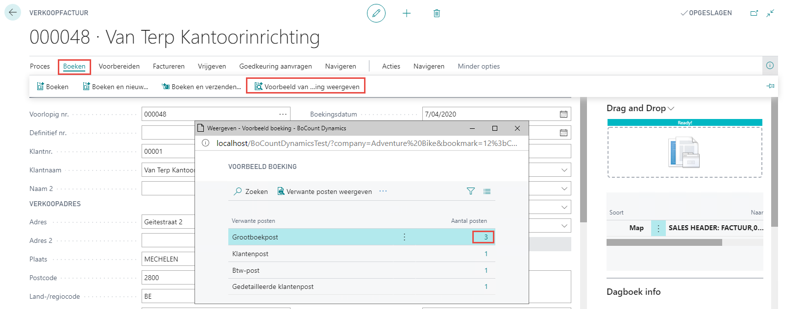 In het infoblok Dagboek info ziet u de laatst geboekte verkoopfactuur in hetzelfde dagboek.