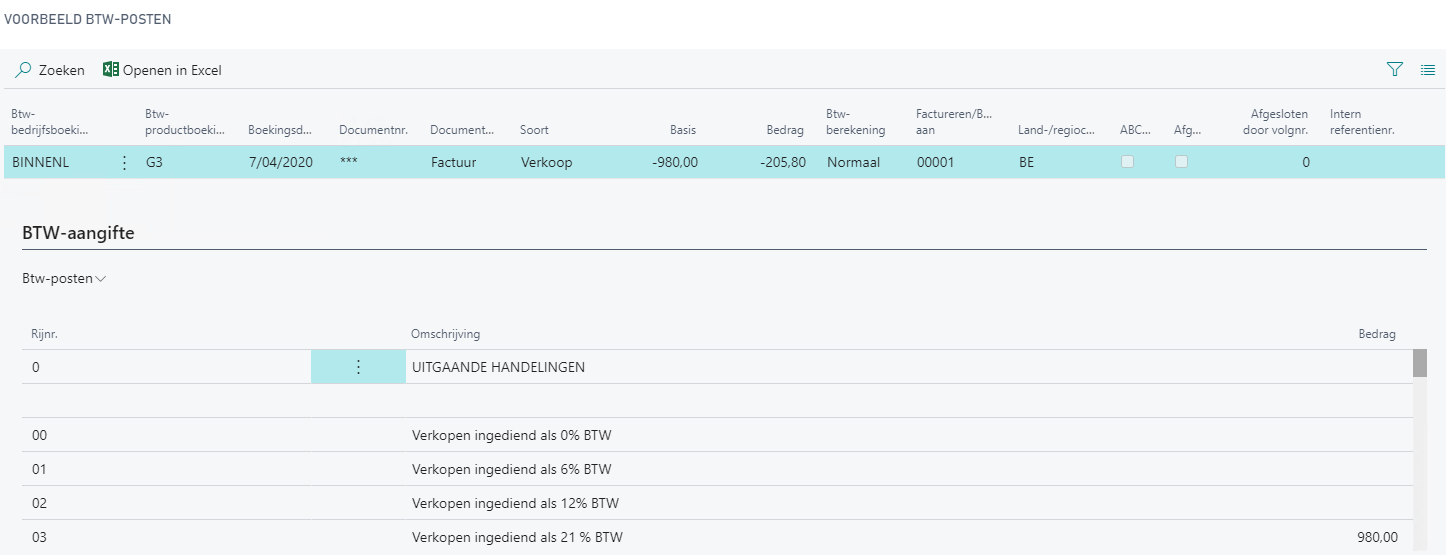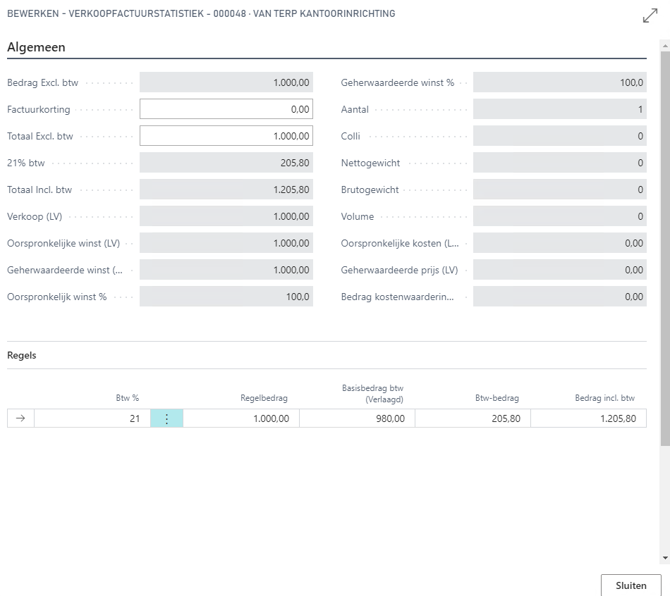 | Btw-bedrijfsboekingsgroep | De btw-bedrijfsboekingsgroep wordt overgenomen van datzelfde veld op de hoofding van de factuur. |