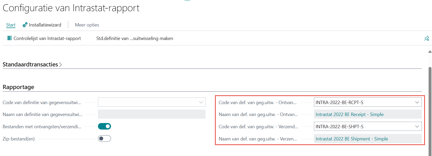 Onder het tabblad Rapportage kan u gaan instellen of u een vereenvoudigde intrastat-aangifte moet indienen voor invoer of voor uitvoer.