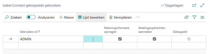| Gekoppeld | Geeft aan of de gebruiker gekoppeld is met Isabel. |