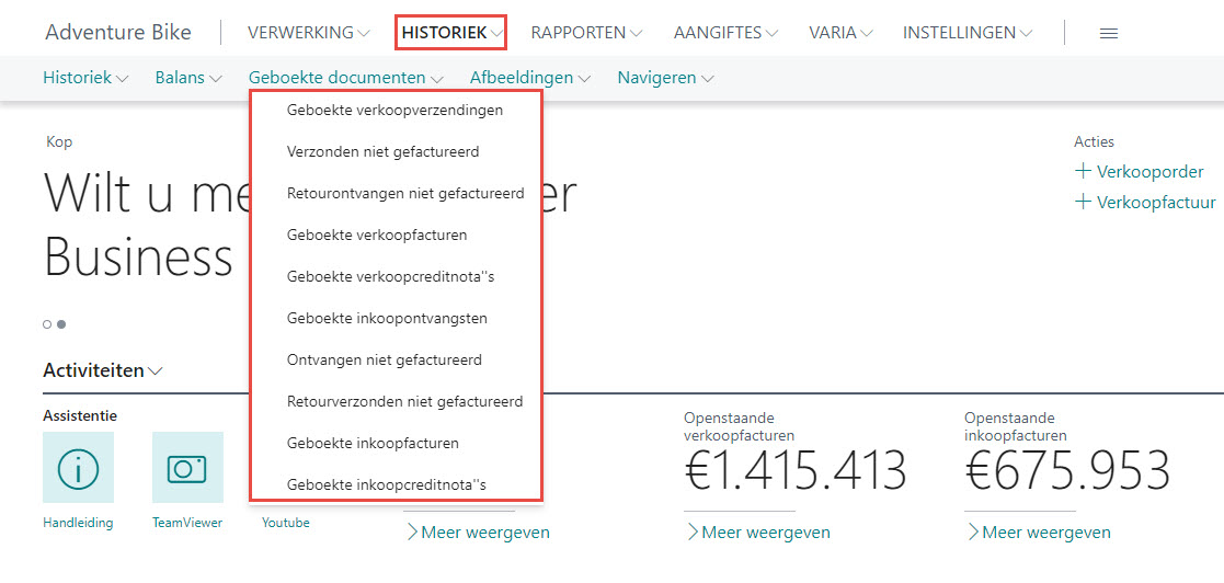 Via het Rolcentrum > Tab Historiek kunt u geboekte documenten terug gaan consulteren exact zoals u ze heeft geboekt. Via de knop Documentafbeelding (onder meer opties > Tab Acties) kunt u een eventueel gescand document gaan raadplegen. Op de gescande facturen, zal rechts bovenaan op de afbeelding het factuurnummer worden toegevoegd. Indien in dit scherm het infoblok PDF Viewer werd toegevoegd, dan zal op de preview van de PDF het factuurnummer niet zichtbaar zijn, enkel via de knop Documentafbeelding in het lint.