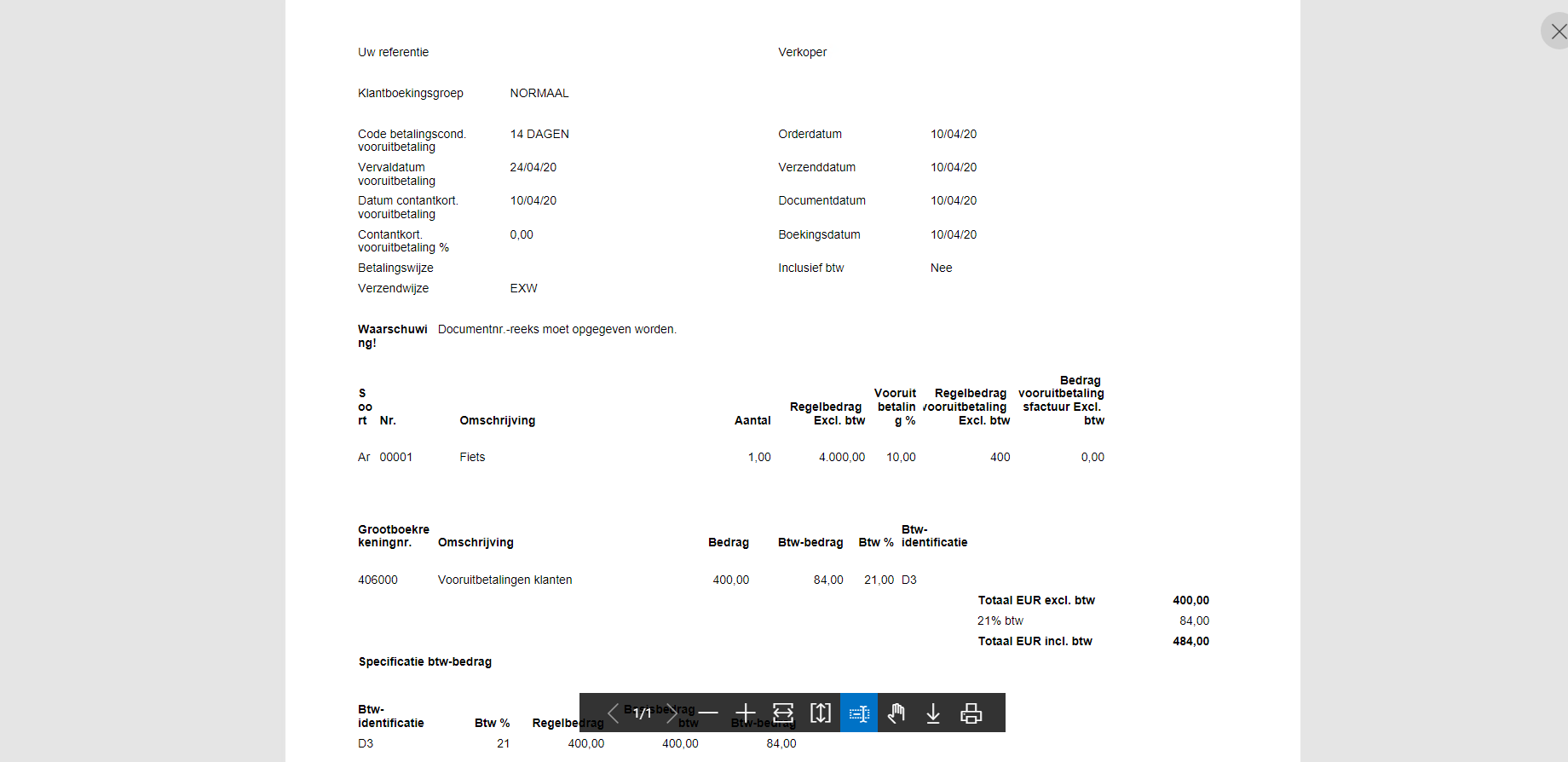 Vooruitbetalingsfacturen