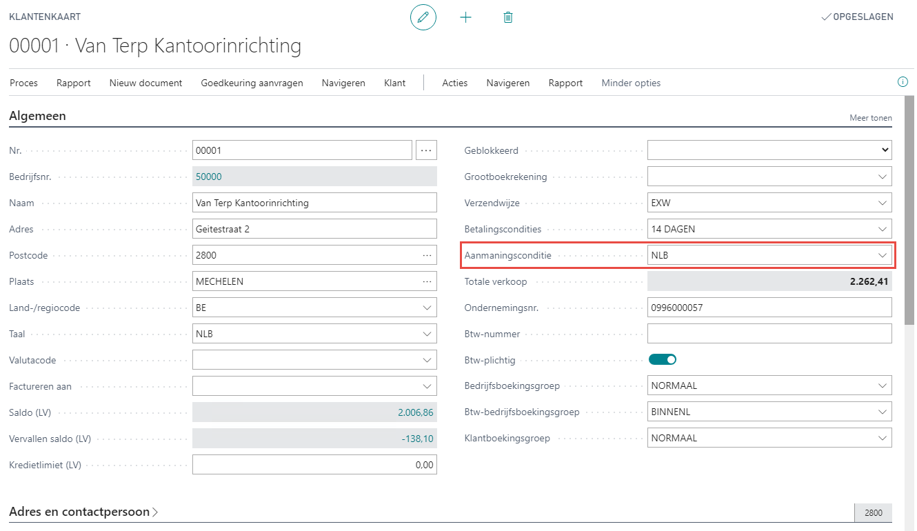 Op de klantkaart dienen volgende velden te zijn ingevuld:
