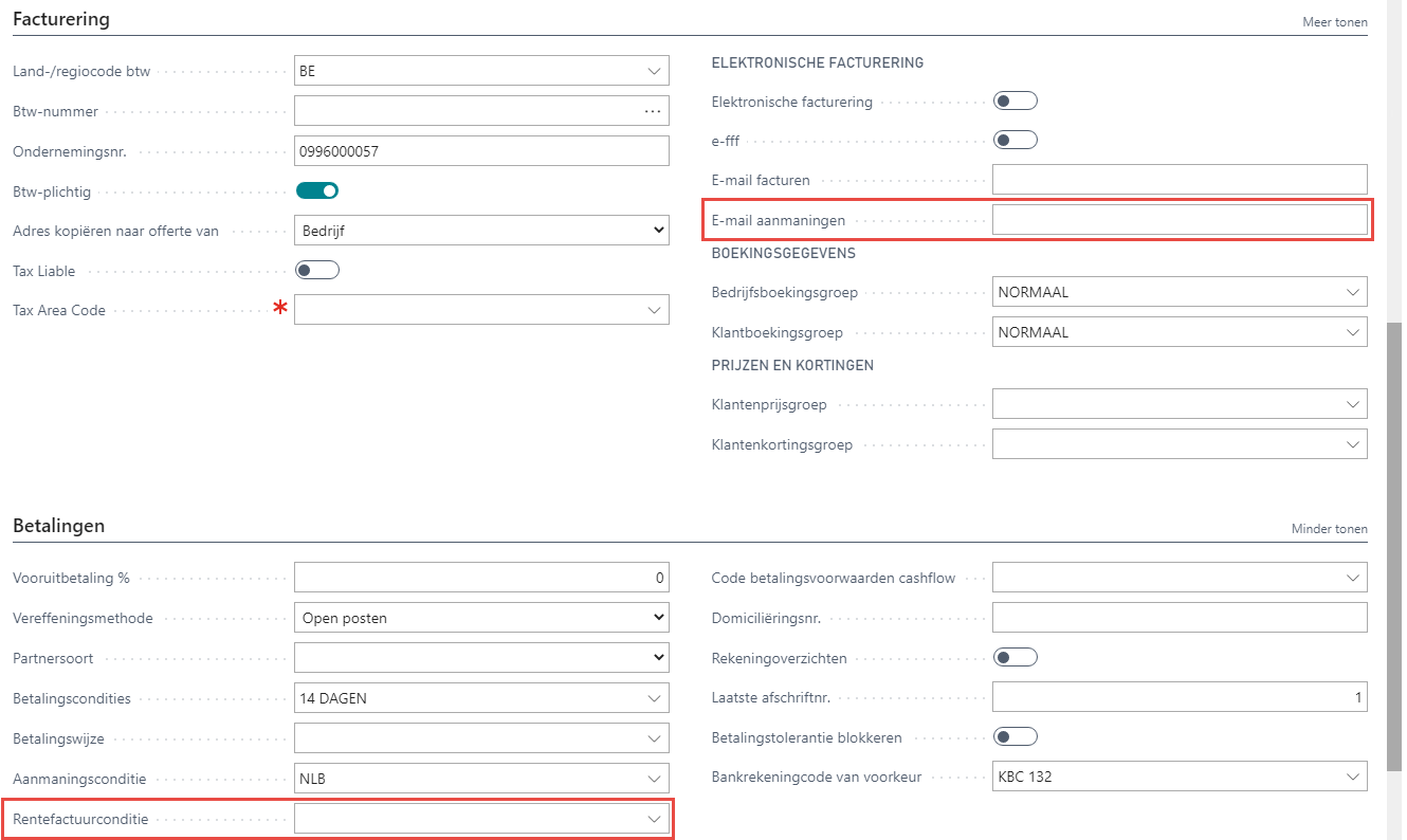 - Rentefactuurconditie (sneltabblad Betalingen op de klantkaart);