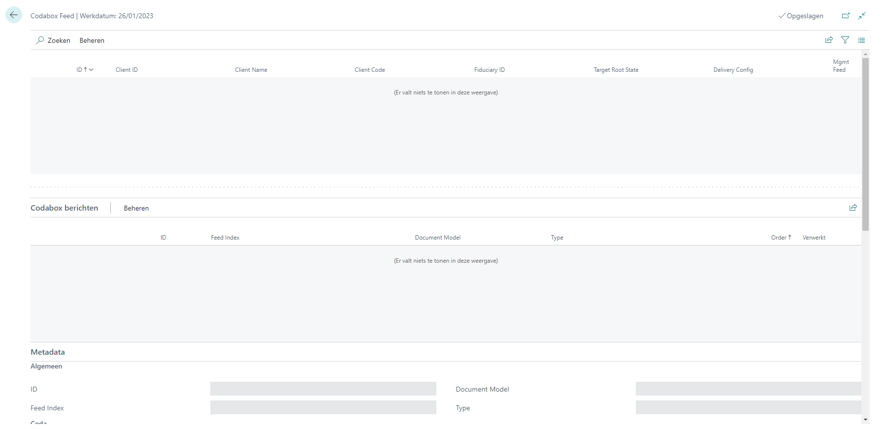 Indien u wat meer informatie wenst over de openstaande bestanden, gaat u naar Tab Home > Berichten. Hier krijgt u een overzicht van alle CODA- en SODA-bestanden van de geselecteerde klant.