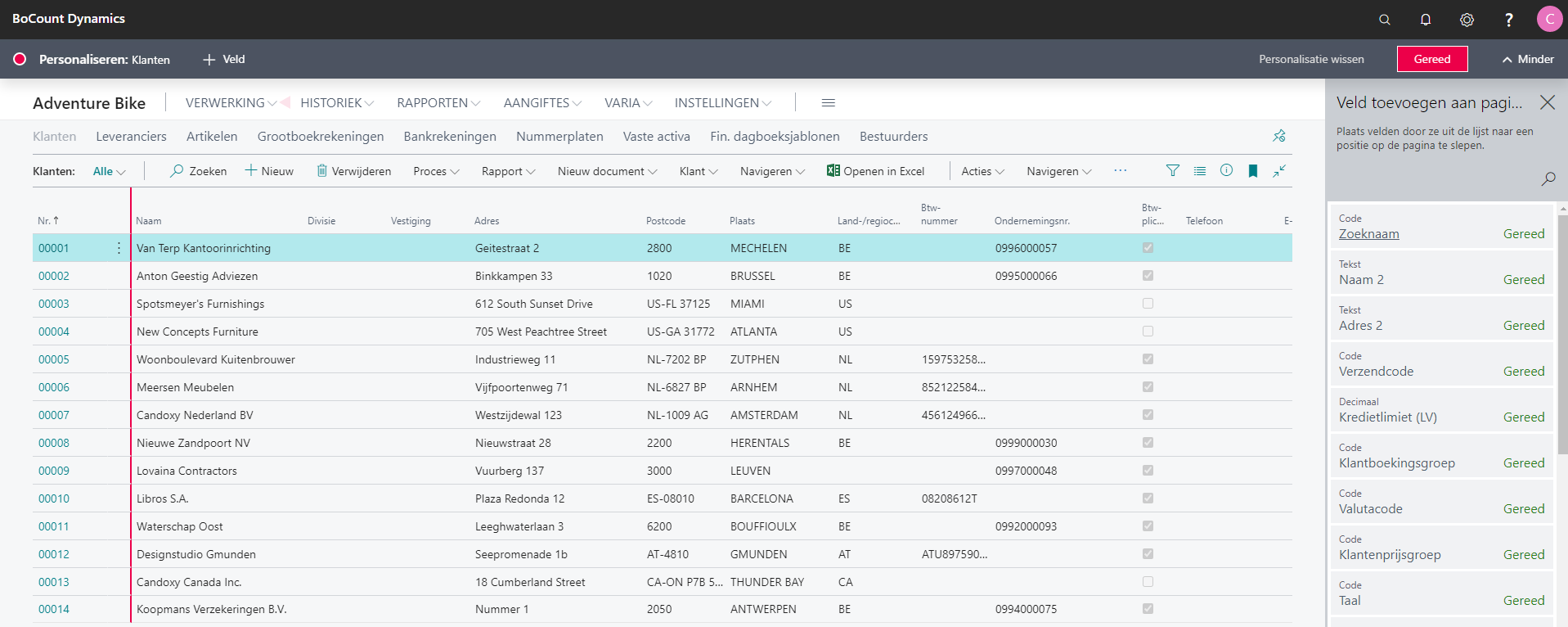 Welke kolommen, infoblokken en acties worden getoond, kan worden bepaald door te klikken op Instellingen > Personaliseren.