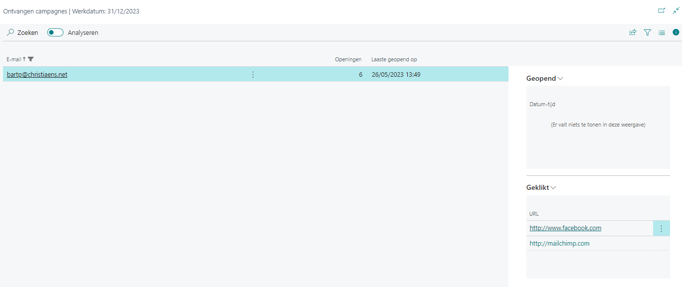 | Laatst geopend op | Dit is de datum waarop de mail voor het laatst werd geopend. |