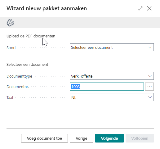 Via de actie Voeg document toe kunnen er meerdere documenten/bestanden worden gebruikt in hetzelfde pakket.