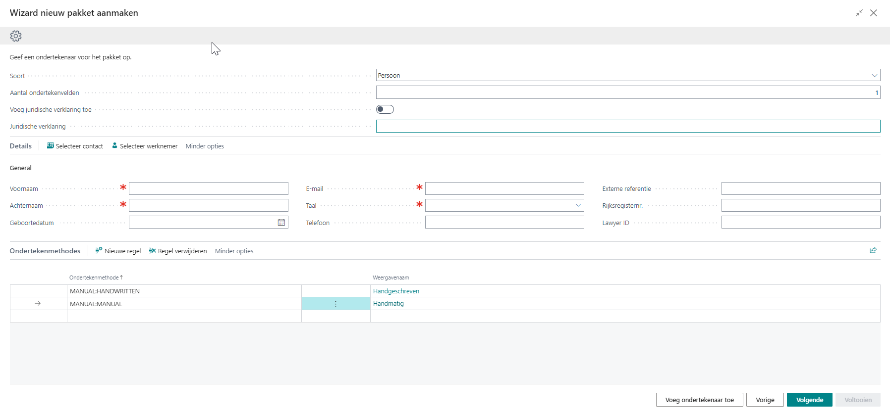 Deze standaard ondertekenmethodes zullen dan standaard ingevuld worden bij elke belanghebbende.