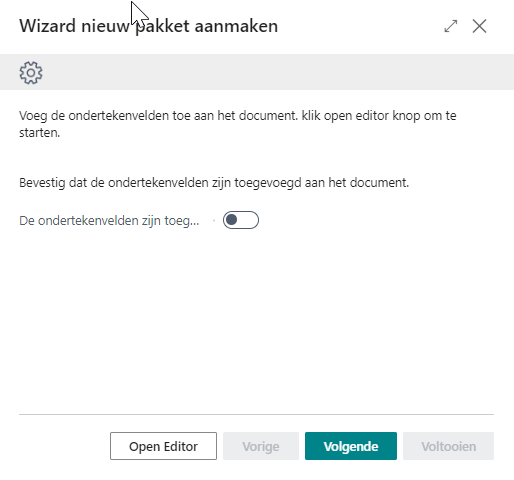 Via de actie Open editor kunnen de ondertekenvelden worden toegevoegd aan het document.
