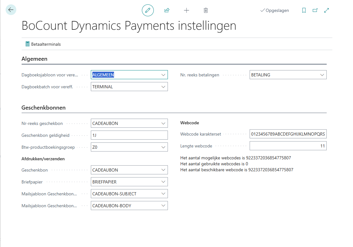 | Webcode lengte | Stel de lengte in voor de webcode van de geschenkbonnen. |