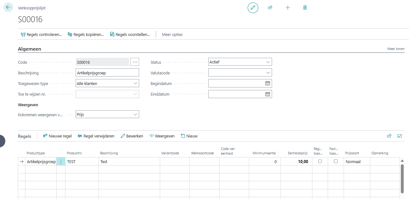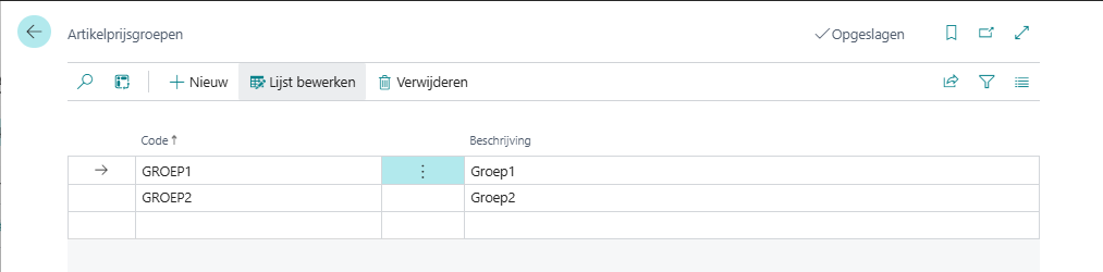 Op prijslijsten kan de artikelprijsgroep worden opgenomen en kan er een prijs worden ingesteld.