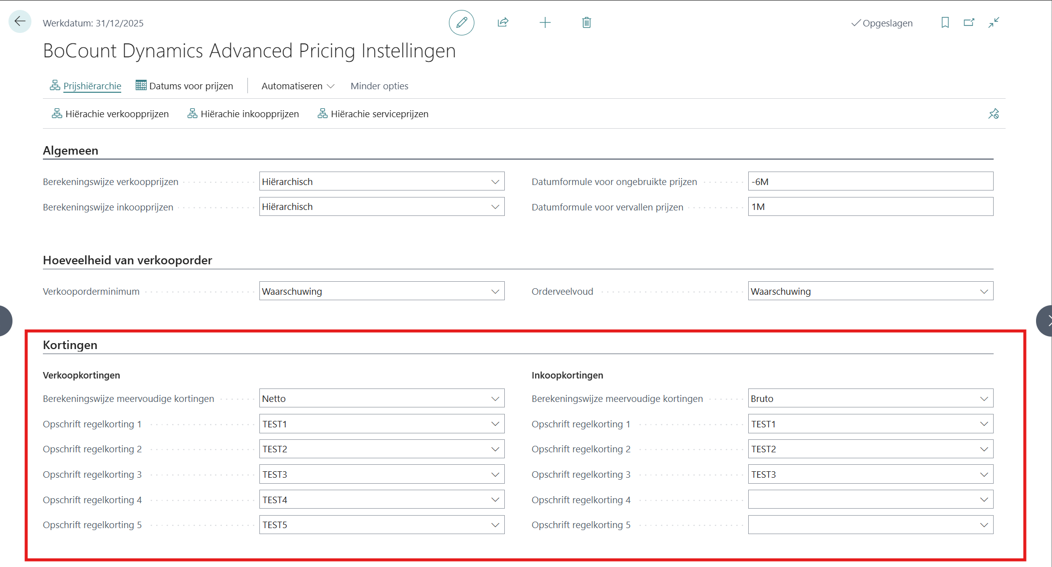 Met BoCount Dynamics Advanced Pricing kunt u, in tegenstelling tot de standaard functionaliteit waarbij slechts één korting per documentregel mogelijk is, meerdere kortingen (tot 5) toepassen op een documentregel. In de Advanced Pricing instellingen kunt u bepalen of deze kortingen netto (opeenvolgend) of bruto (over hetzelfde bedrag) worden verrekend.