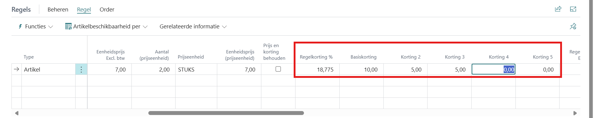 De meerdere kortingsvelden zijn ook beschikbaar op een orderregel: