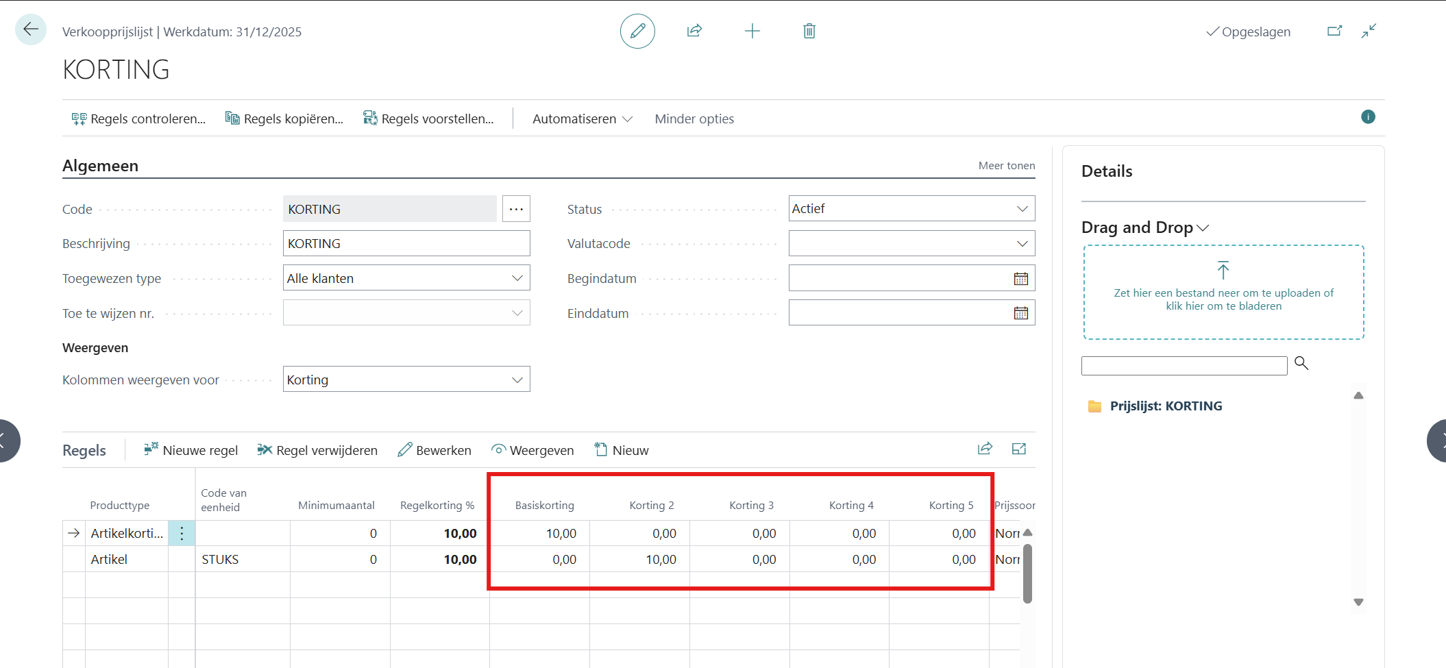 In de toegepast prijslijstregels zijn de verschillende regels vanwaar de kortingen afkomstig zijn opgelijst.