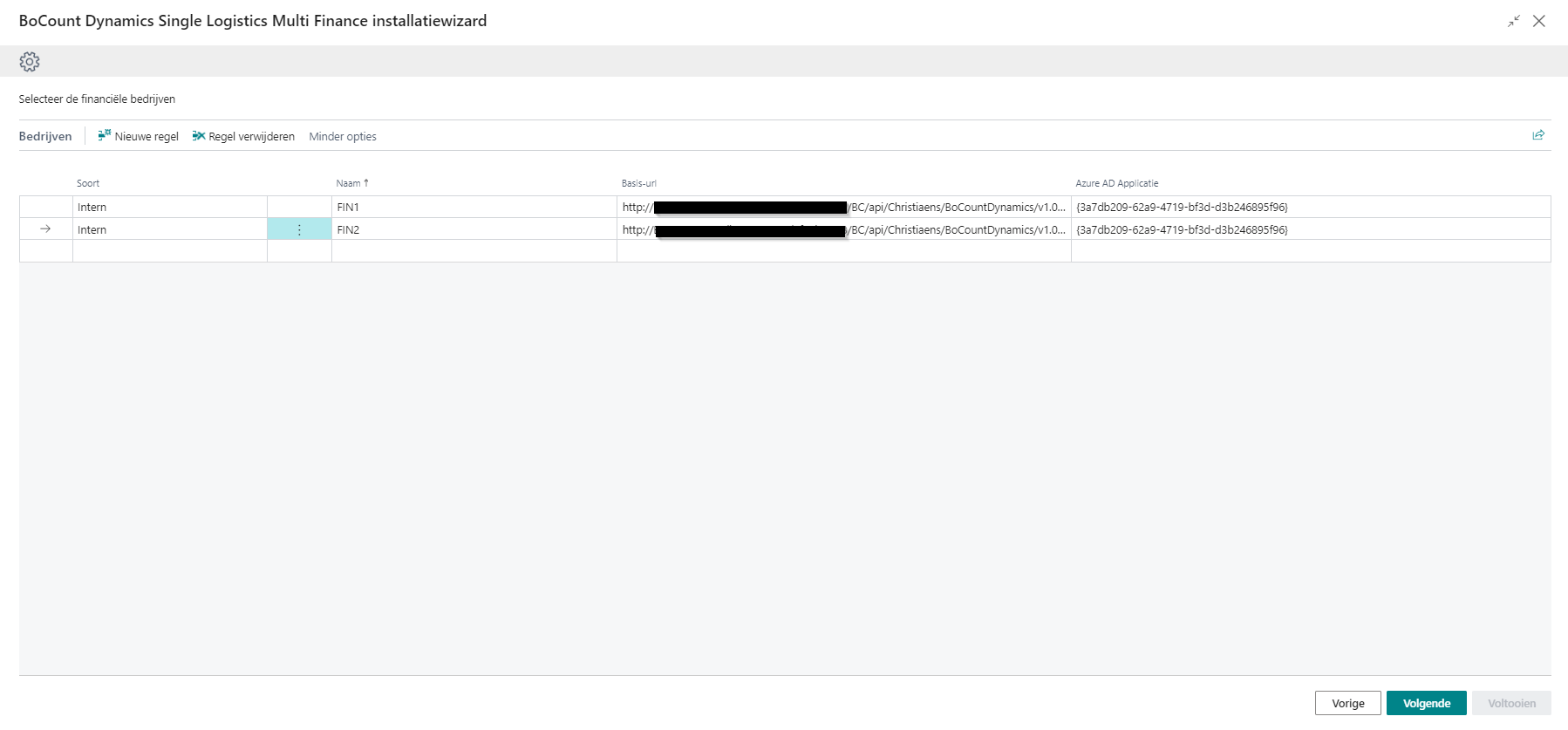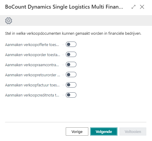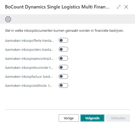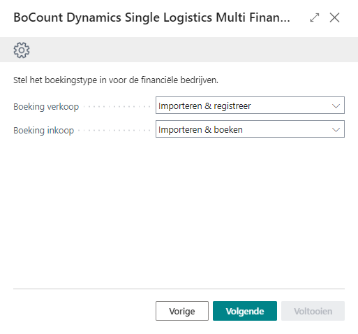BoCount Dynamics Single Logistics Multi Finance installatiewizard