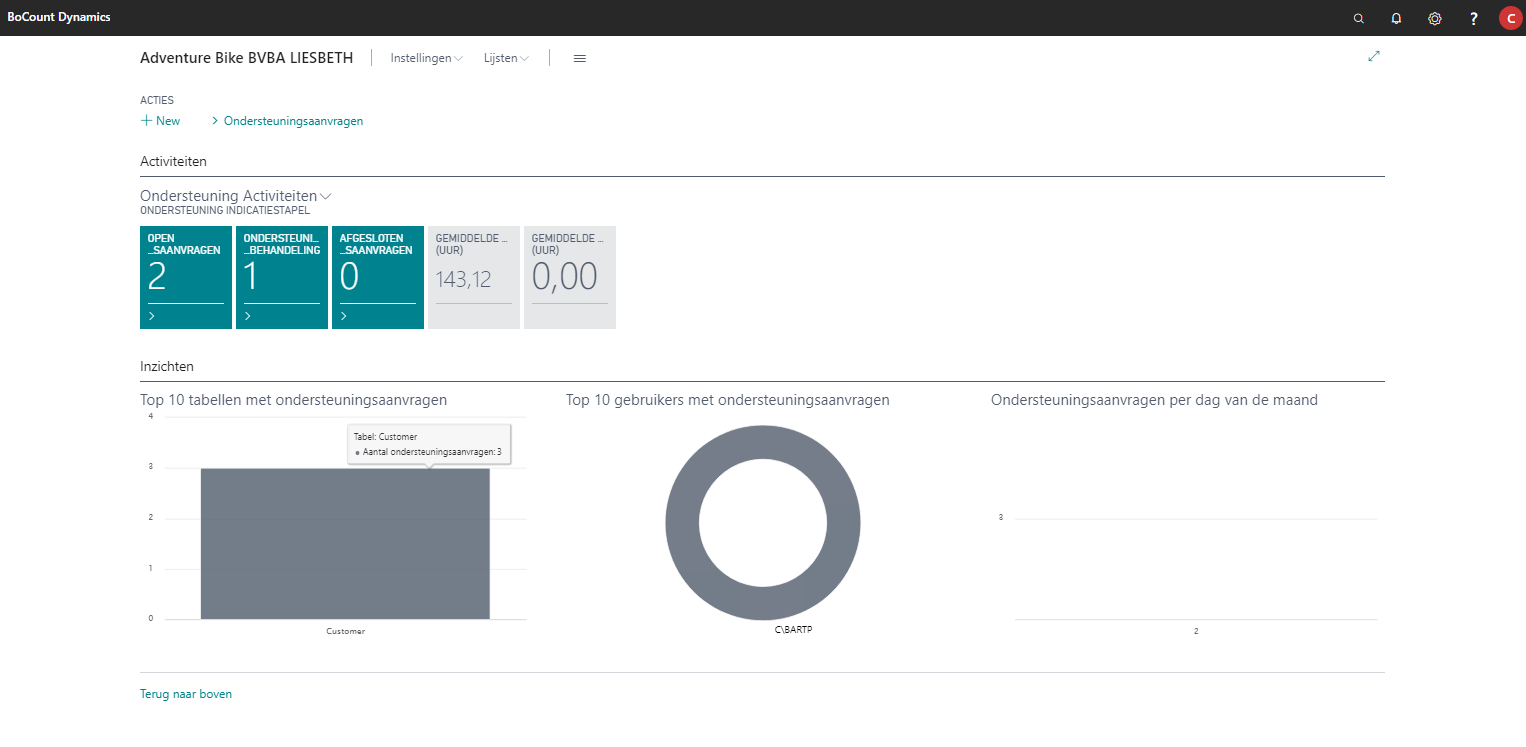 | Ondersteuningsaanvragen in behandeling | Aantal ondersteuningsaanvragen die in behandeling zijn door de gebruiker. |